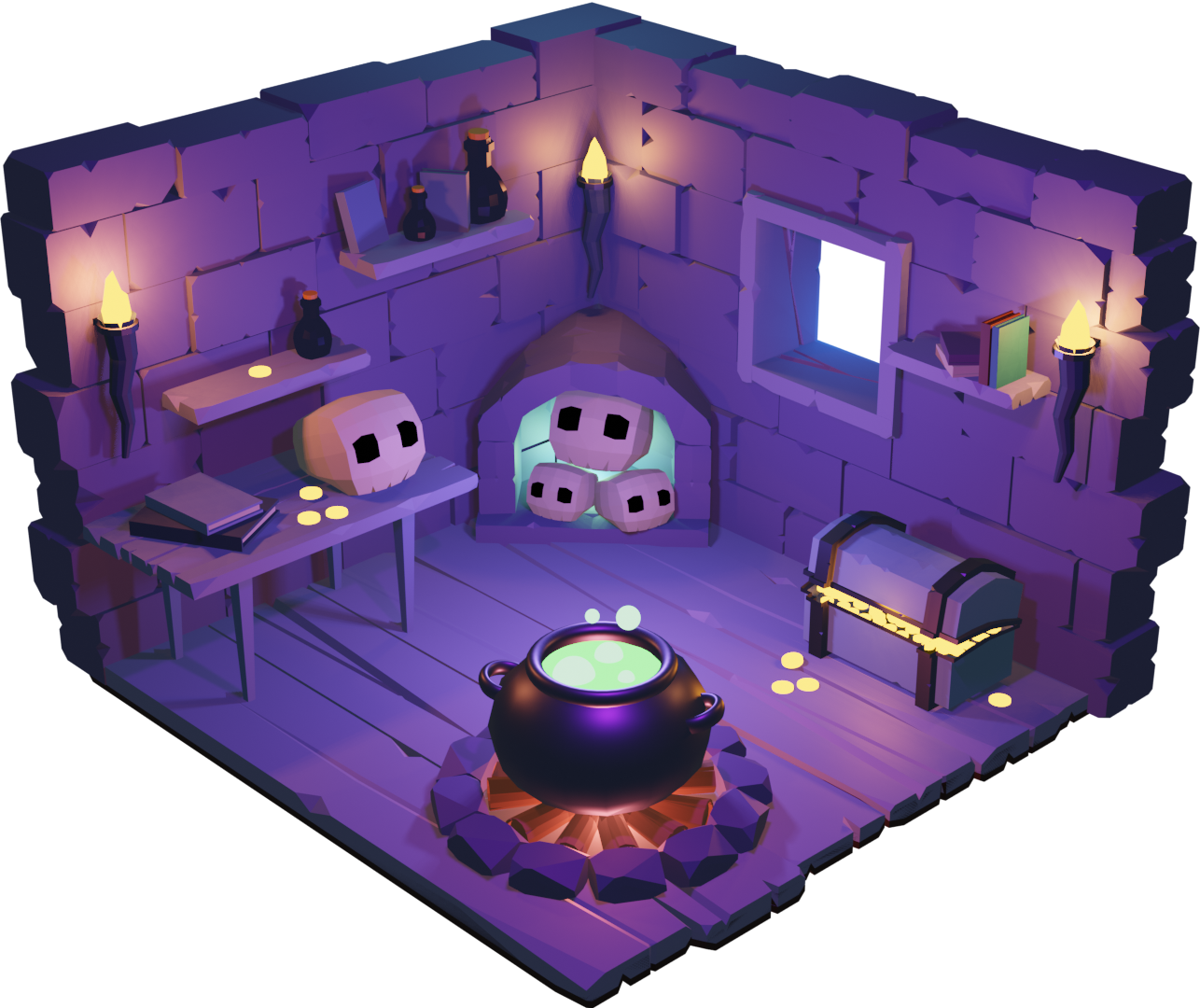 To maintain the gamification aspect for social media, I developed a series of 3D props tailored to engage our community. These elements blend fantasy and finance, reinforcing the project's identity while providing visually appealing, shareable content. From glowing cauldrons and enchanted books to treasure chests and mystical portals, each object enhances the immersive experience, resonating with the audience’s love for storytelling and interactive visuals. By incorporating these game-inspired assets, we ensure that our social media presence remains fun, engaging, and aligned with the brand’s magical essence.